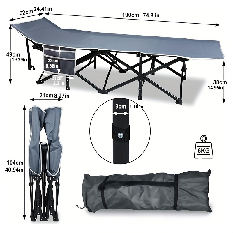 Sleeping when camping is never the great experience. Let's put an end to this, with the help of this Outsunny camping folding cot. A fully buildable design - comes with legs, side poles and top fabric - set up and take down, put in the bag and take with you wherever you want; makes being comfortable on camping trips ever so easy. The top fabric holds your body comfortably, the legs elevate you so you don't have to touch the ground.