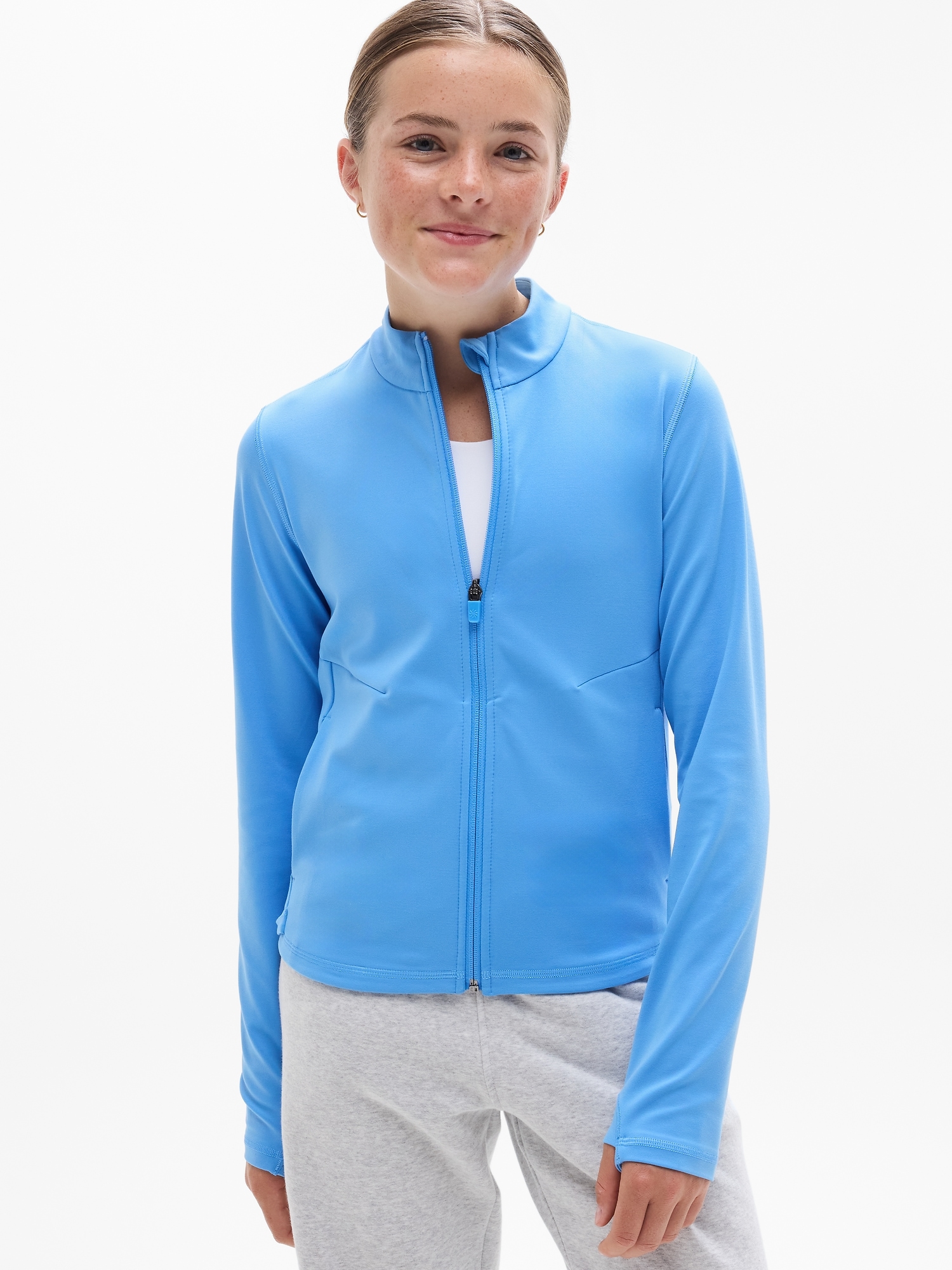 FOR: School, practice, and play FEEL: Powervita fabric is buttery soft with support that feels like a gentle hug FAVE: Thumbholes hold sleeves in place and keep warmth in Semi-fitted, skims easily over the body.