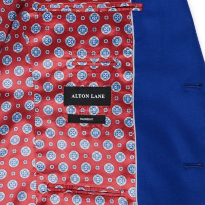 Modern tailoring and classic details combine to make this suit the perfect choice for any occasion. The performance stretch fabrics add all-day comfort and resist wrinkles. FEATURES: Tailored fit, fully lined, notched lapel, 2-button closure, flap pockets, side vents, non-functional buttons at cuff, contrast lining and piping. Matching trousers feature an extended button tab waistband and back jetted pockets. This suit has a 6" drop which is the difference between the size of jacket and pants. For example: a 40R jacket includes a 34W pant. | Alton Lane Men's Mercantile Performance Nested Suit, 43 Regular