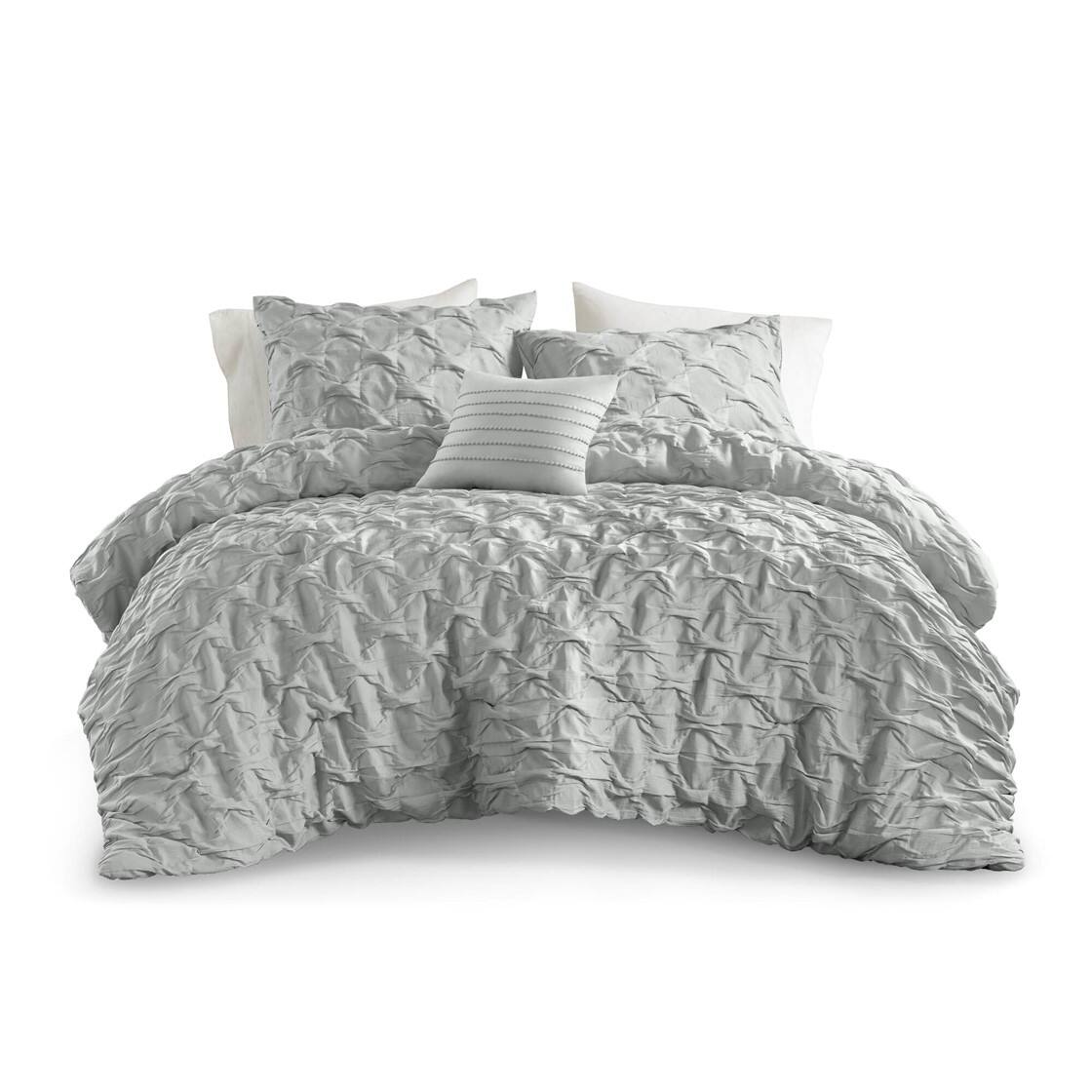 The Gracie Mills Blanca Comforter Set blends casual elegance with cozy sophistication, making it the perfect upgrade for your bedroom. Featuring a chic ruched ogee pleat pattern in vibrant hues and crinkle-textured fabric, this set adds depth and charm to your space. Crafted from premium polyester, it offers superior softness, breathability, and durability, while remaining wrinkle-resistant and machine washable for effortless care. Intricately embroidered decorative pillows complete the look, transforming your bedroom into a haven of comfort and style!