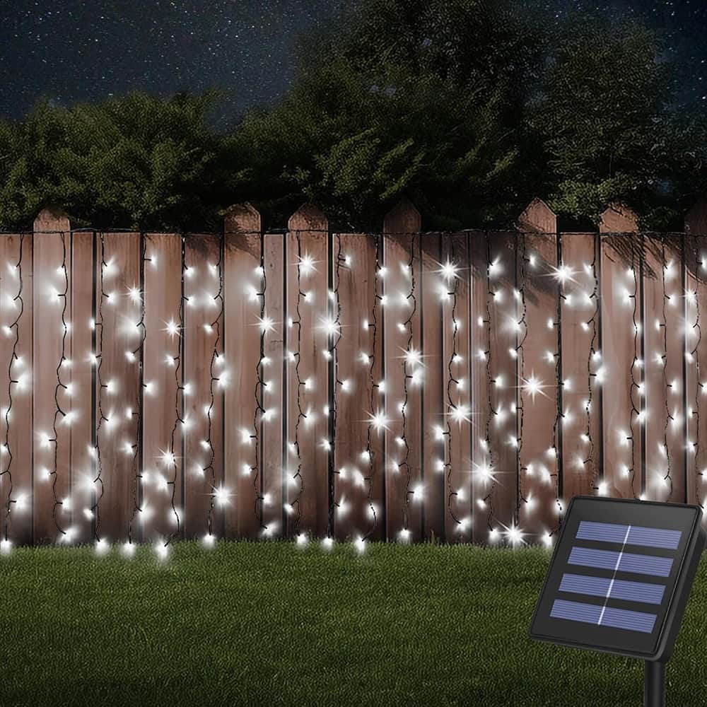 No wiring is required to install these outdoor curtain lights, making them a hassle-free choice for any outdoor or indoor space. (The outdoor waterproof curtain lights vertical light strings are 3.3 feet long and the 3.3-foot strands are about 8 inches apart on the main strand and there are 30 vertical strands in total.)