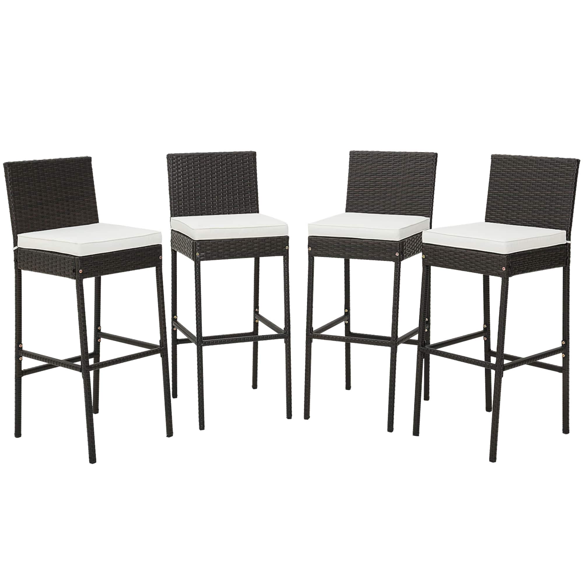 Costway - 4 PCS Patio Wicker Barstools Bar Height ...