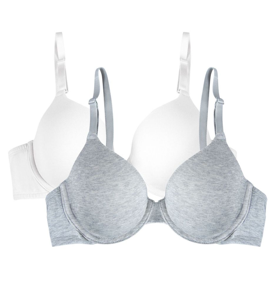 Fruit Of The Loom FT797 Lightly Lined T-Shirt Bra - 2 Pack White/heather grey 36A at HerRoom. | Fruit Of The Loom Women's Lightly Lined T-Shirt Bra - 2 Pack in White/Heather Grey | Size: 36A | HerRoom.com