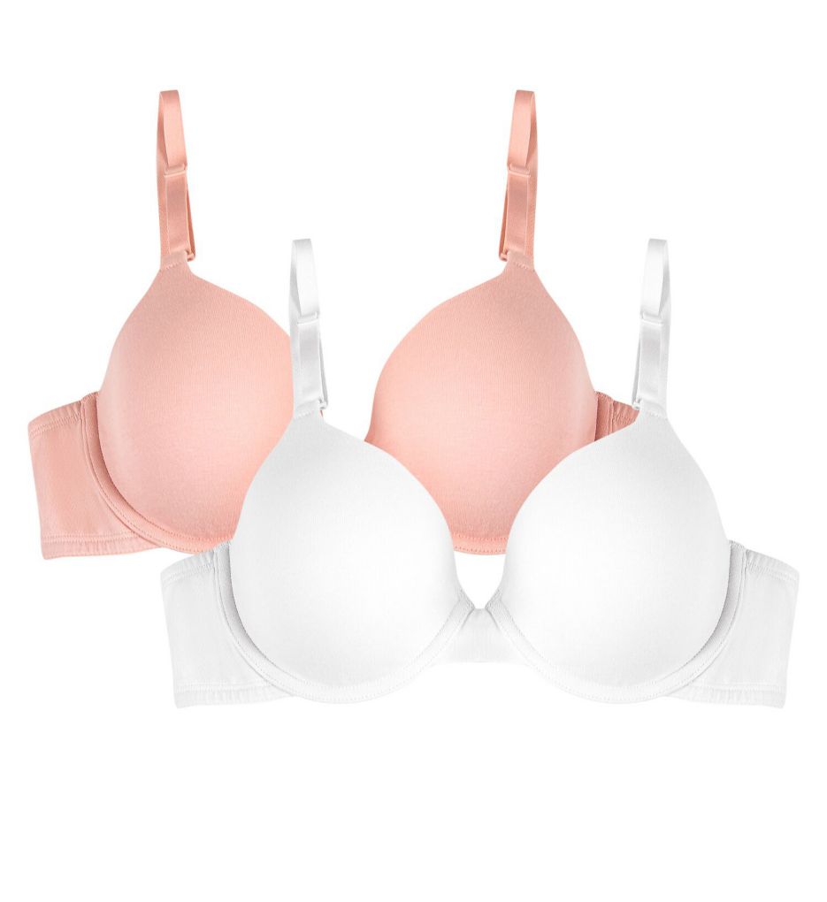 Fruit Of The Loom FT797 Lightly Lined T-Shirt Bra - 2 Pack White/Blushing rose 40DD at HerRoom. | Fruit Of The Loom Women's Lightly Lined T-Shirt Bra - 2 Pack in White/Blushing Rose | Size: 40DD | HerRoom.com