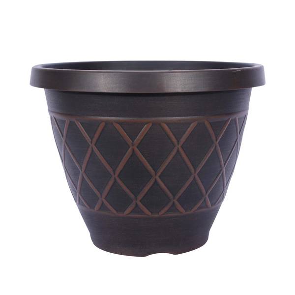 Transform your outdoor space with the Southern Patio Lacis planter featuring an exquisite brown finish accented with hand-painted gold brush strokes. This artistic container brings gallery-worthy style to your patio, porch, or garden with its glossy surface and sophisticated color combination that complements any decor. Despite its elegant appearance, this planter is built for durability with high-density resin construction that withstands freezing temperatures, intense sun, and heavy rain without cracking. The UV-resistant finish ensures the rich brown background and metallic gold accents maintain their vibrant appearance season after season. Measuring at a versatile size, it's perfect for showcasing flowering annuals, ornamental grasses, or decorative shrubs while adding architectural interest. The weather-resistant properties protect your plants while the lightweight design makes seasonal rearranging simple. This Southern Patio planter represents an excellent investment for homeowners who appreciate both artistic style and practical performance.