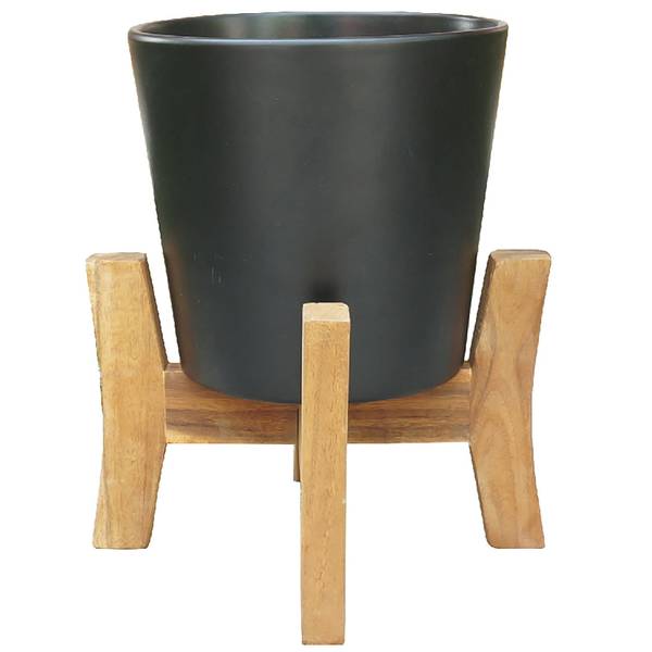 Beautify your indoor space with the Southern Patio 8" Black Contemporary Planter with Stand, featuring sleek ceramic crafting in a stylish modern design. This hand-crafted raised planter showcases your small houseplants while complementing a variety of interior styles with its clean look.
