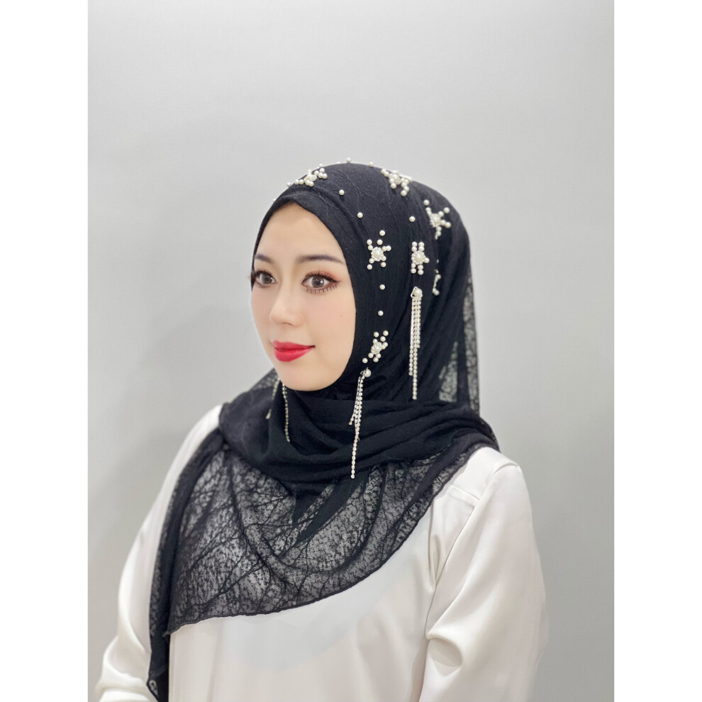 Islamic Floral Tassel Hijab Abaya Hijab Beaded Lea...