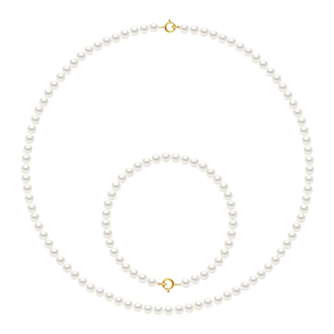 - Parure Necklace Bracelet Consists Of Necklace Of Real Cultured Freshwater Pearls Round 4-5 Mm Natural White Color Spring Ring Clasp Yellow Gold 750 - Length 42 Cm + Bracelet Of Real Cultured Freshwater Pearls Round 4-5 Mm Natural White Color Spring Ring Clasp Yellow Gold 750 Length 18 Cm Supplied With Certificate Of Authenticity And International Guarantee