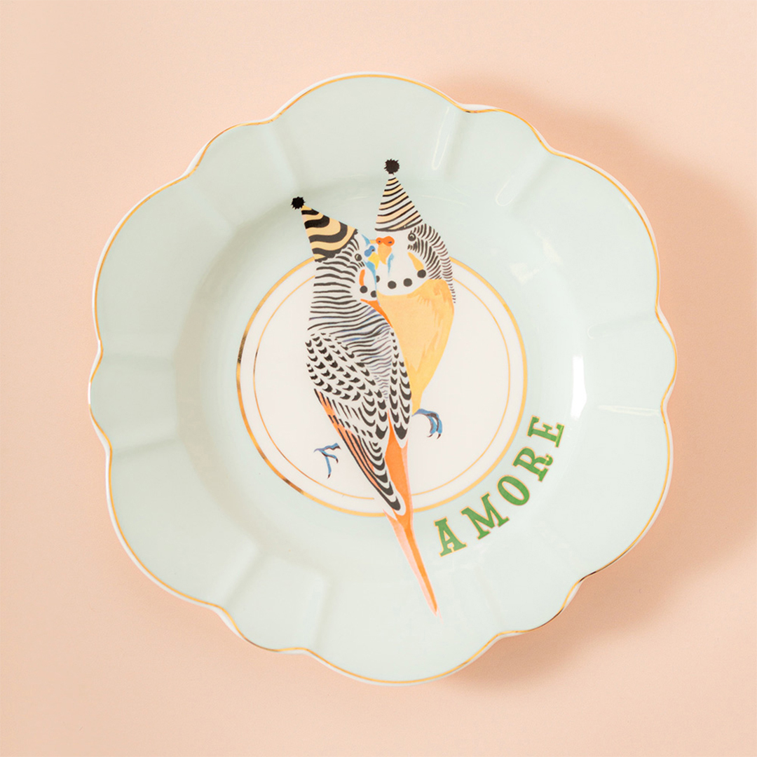 Defo a new favourite plate! Our parrots sit proudly on this vintage style flower plate. The scalloped edge make this plate sure to be the show stopper of your tableware collection! A pastel blue background and gold foiling detail are tied together with a quirky slogan. So unique! Produced in bone china for a fabulously luxurious feel.