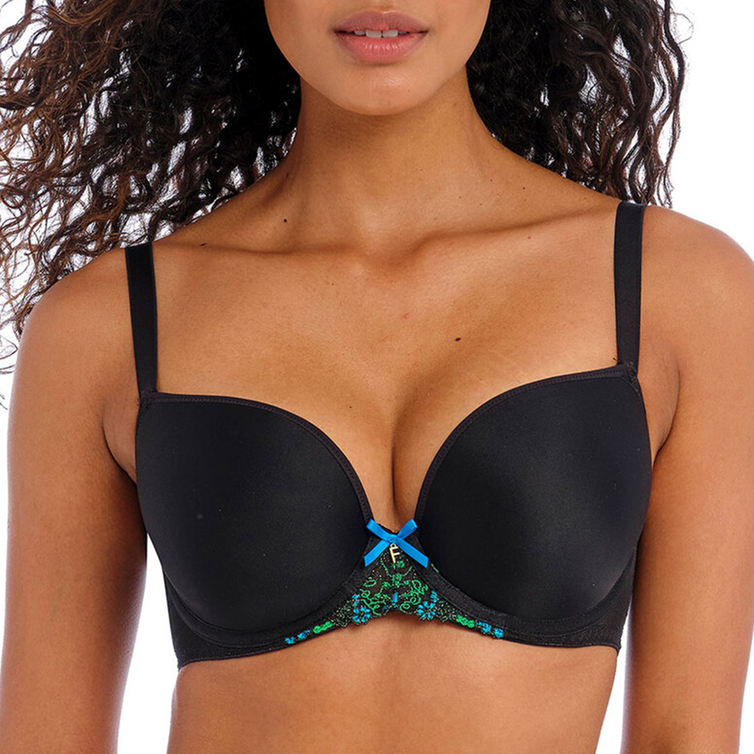 Curvy Kate's Flare full plunge bra reinvents the Centre Stage fit with a striking emerald green twist. Four-part cups with side support panels provide shape and lift, while non-stretch fabrics ensure support. Flame-inspired embroidery with subtle sparkle adds drama, and a cross-over centre front prevents band rolling. Finished with a J-hook on fully adjustable straps for racerback wear.Fuller coverage plunge for a secure fit with lower necklineNon-padded, semi-sheer meshUnderwiredFully adjustable straps (sizes 30 G-H, 32 G-GG, 34 G, 36 F-FF, 38 F, 42 DD are 18mm wide; all other sizes 22mm)J-hook for racerback conversionFastens with three hooks, three columns Embroidery: 100% Polyester, Main: 100% Polyamide, Wing Mesh: 74% Polyamide, 26% Elastane