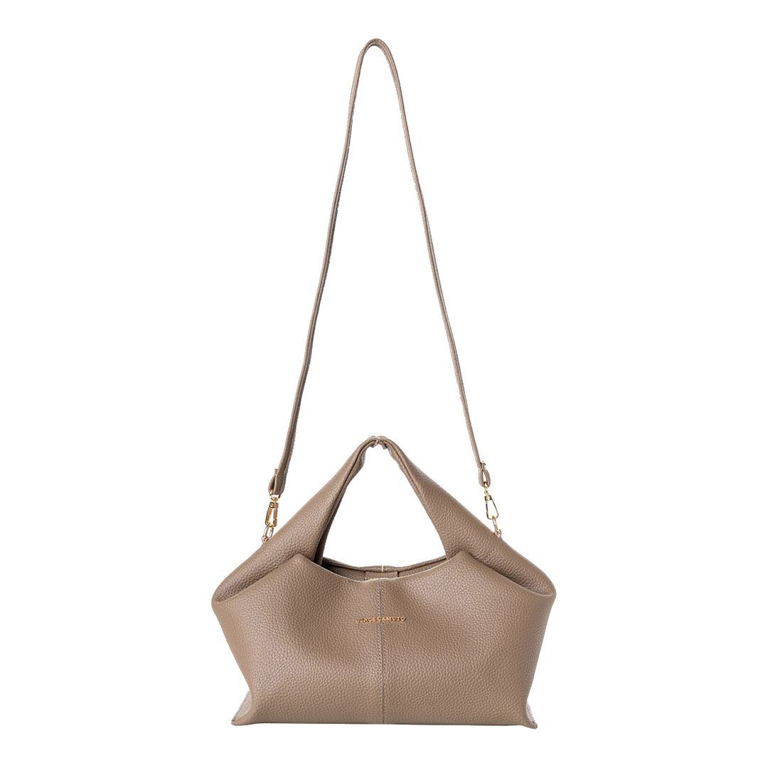 Mink Capri HandbagDimensions: Length: 34 cm Width: 13 cm Height: 17 cmNumber of Interior Pockets: 1 Long Strap Length: 105 cm. Drop Length: 55 cmComposition: 100% Polyvinyl LeatherColour: Mink
