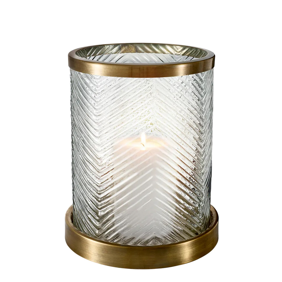 Enlighten your home décor with the exquisite Hurricane Paloma S. Hand blown by skilled glass artisans, this vintage style candle holder features a cylindrical jar from ribbed cut glass and a base and rim in antique brass. Dimensions All mentioned dimensions are approximate and may vary by up to 2%. Ø 23 Height: 27 cm Materials & Other Information Vintage brass finish & hand blown glass Indoor use & dry locations only Care Information How to care for lighting with a metallic finish and glass or acrylic To maintain the beauty of your luxury lighting, we recommend the following simple guidelines. When cleaning a lamp, make sure you unplug the power cord first. Always make sure sprays or liquids can not get in the lamp fittings. Cleaning & Maintenance For general maintenance, periodically dust off your lighting with a feather duster or a soft clean cloth, preferably weekly. Metallic finishes Use lukewarm water with a mild household detergent to clean metal finishes. Gently wipe the metallic surfaces, rods and parts with a soft, dampened cloth or chamois. Dry well with a clean, soft cloth. Never use cleaners with ammonia, bleach or hard chemicals and avoid paper towels or scouring pads. Glass Never use abrasive materials for cleaning glass as they may cause scratches. Use appropriate glass cleaning solutions and a microfiber cloth. If you are using a chemical cleaner, take care not to spill it on any of the surrounding metallic finishes. After drying with a soft cloth, you can use a piece of crumpled newspaper to give the glass added shine and sparkle. Acrylic Avoid commercial household cleaners because the chemicals in these products can dull and craze the acrylic. The best way to care for acrylic surfaces, rods and parts, is to clean with lukewarm water and a bit of liquid soap. Rinse with clear water and dry well. Always use soft cloths for cleaning as not to scratch the acrylic.