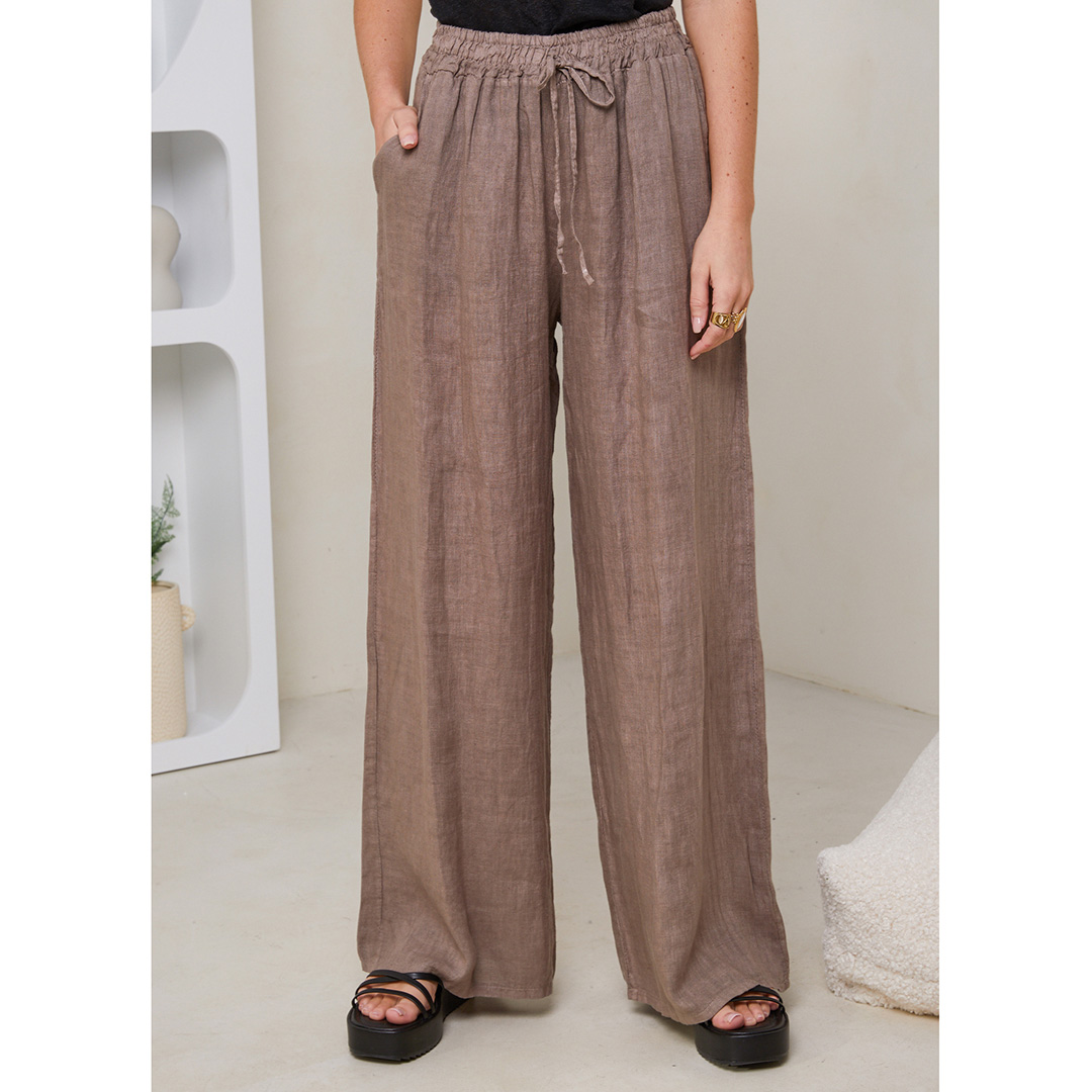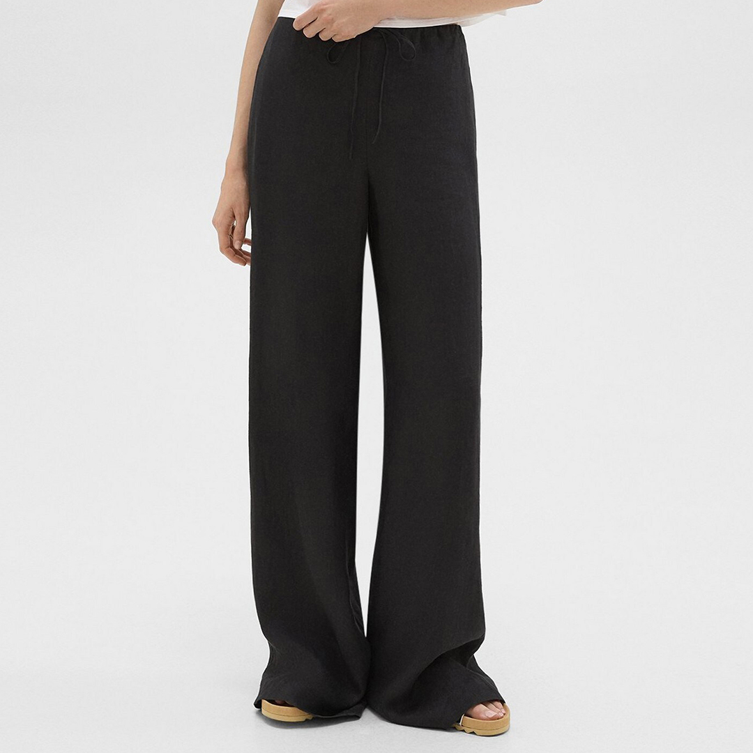 Drawstring WaistSide PocketsWide LegComposition: 100% HempColour: BlackCare: Do not wash. Do not bleach. Do not tumble dry. Cool iron if needed. Dry clean with any solvent except trichloroethylene. Imported