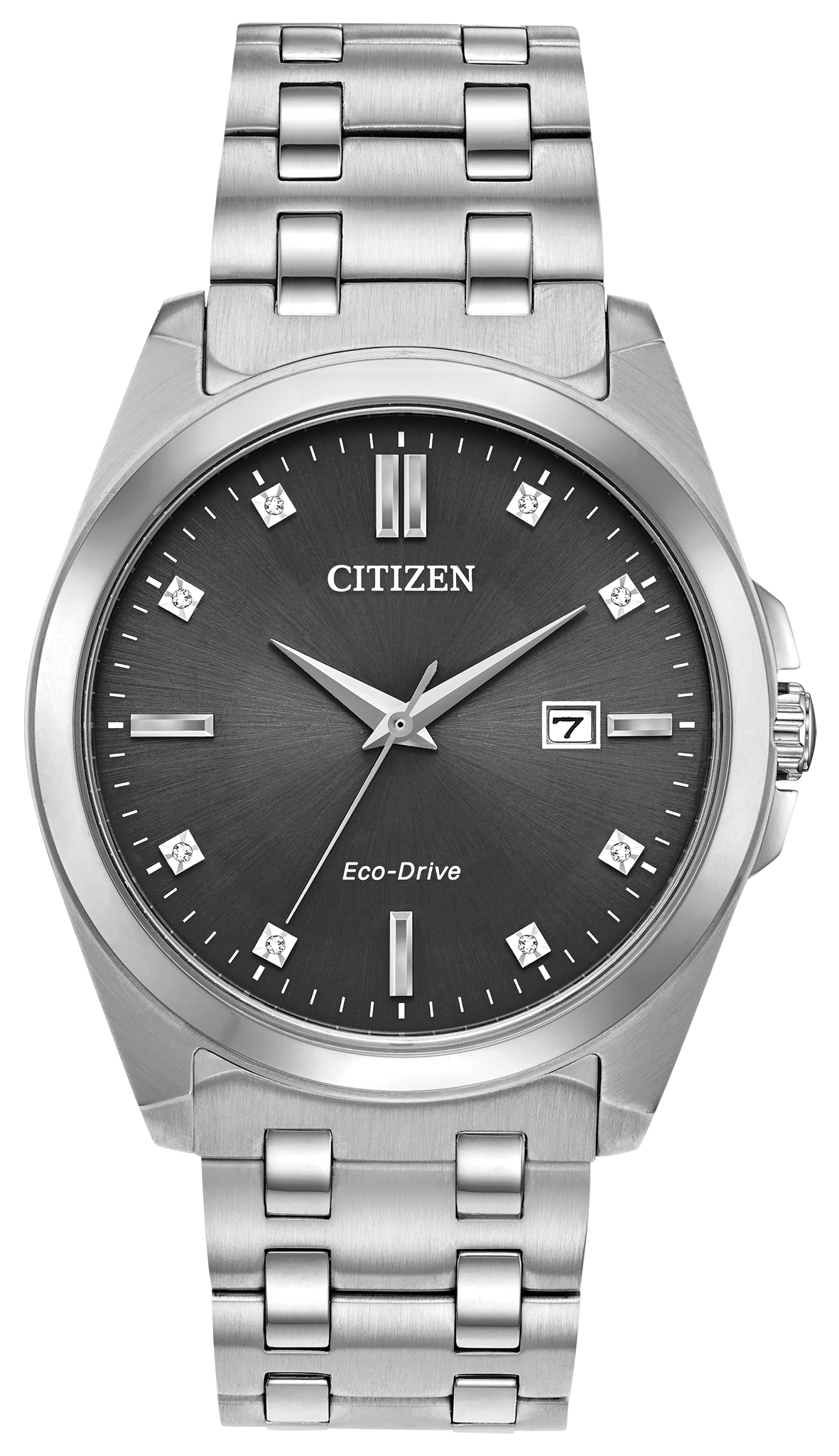 This Citizen Corso collection offers timepieces that are accented with vibrant diamond hour markers in a combination of functional simplicity with a touch of elegance. This timepiece, featured with a stainless steel case and bracelet, adds an extra touch with the light gray dial. Featuring our Eco-Drive technology – powered by light, any light. Never needs a battery. Caliber number E111.