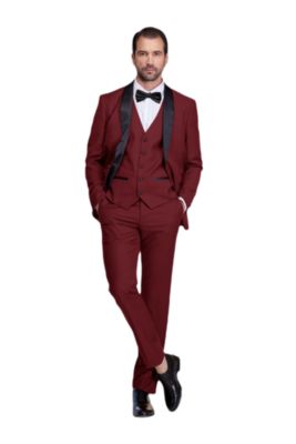 Perry Ellis Slim Fit Textured Tuxedo Jacket with Contrast Lapels