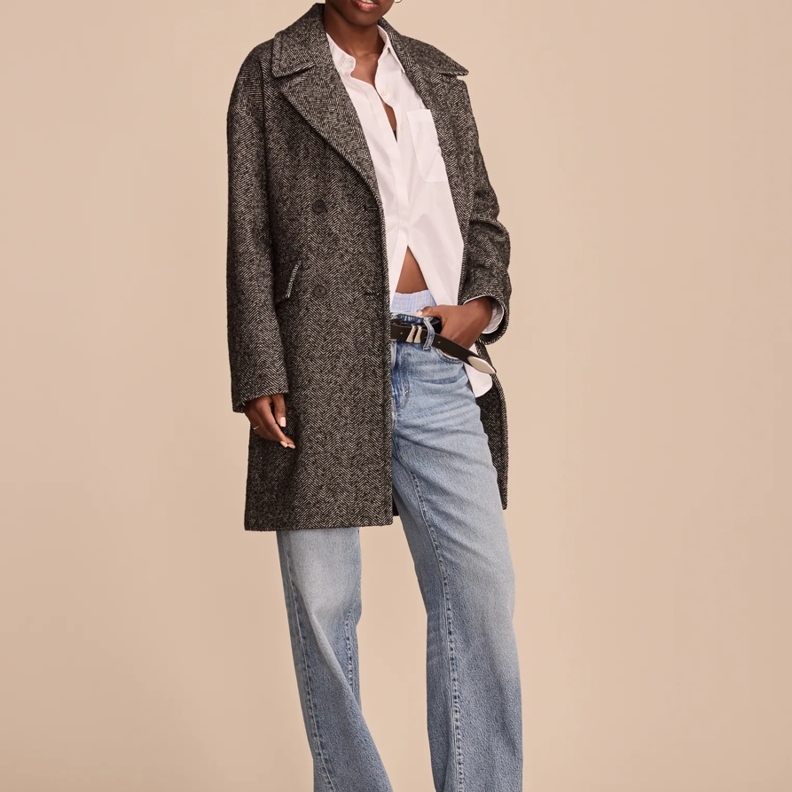Crafted with a classic herringbone pattern and refined notch lapels, this coat exudes elegance from every angle. The double-breasted button closure not only adds a touch of vintage charm but also ensures a secure and flattering fit.