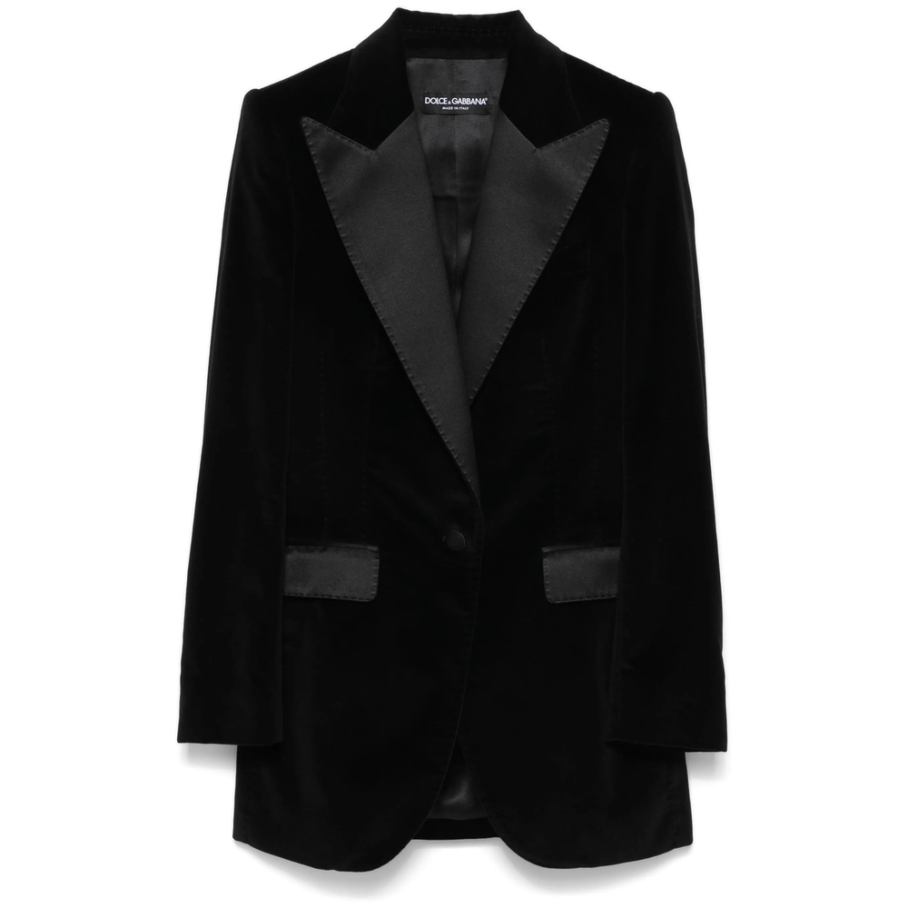 Dolce & Gabbana Black Velvet Blazer with Satin Pan...