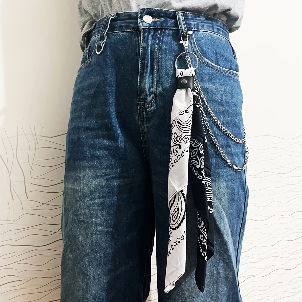 TEMU 1pc 힙합 체인 허리 액세서리, 블랙 앤 화이트 하운드스투스 스퀘어 스카프 다기...