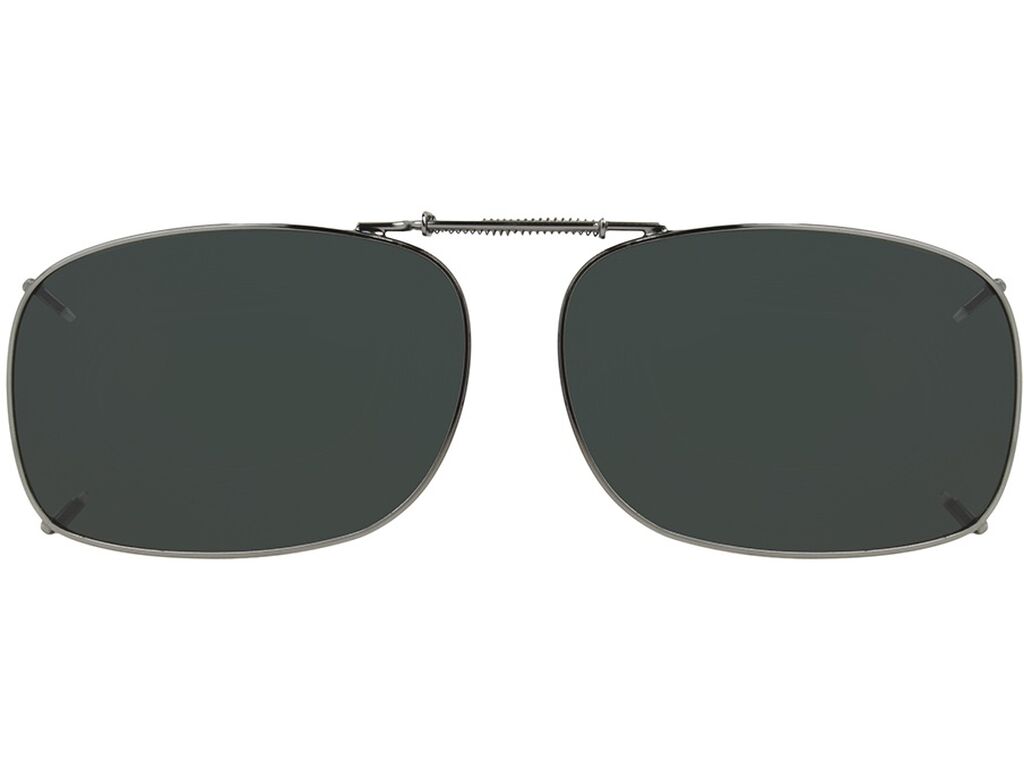 Haven® REC 1 52 Premium ClipOns instantly transform your eyeglasses into a pair of polarized sunglasses. Haven® ClipOn sunglasses are designed with premium materials and feature Optify™ Lens Technology. Rectangle shape with durable and lightweight rimmed design fits traditional metal frames. Gunmetal frame and gray lens tint for bright sunny days offers true color definition. 100% UVA-UVB lens protection. Gentle Grip® protects glasses. Hard case and cleaning cloth included. - Unisex Rectangle Sunglasses in Gunmetal with Gray Lenses by Foster Grant - REC 1 52 H