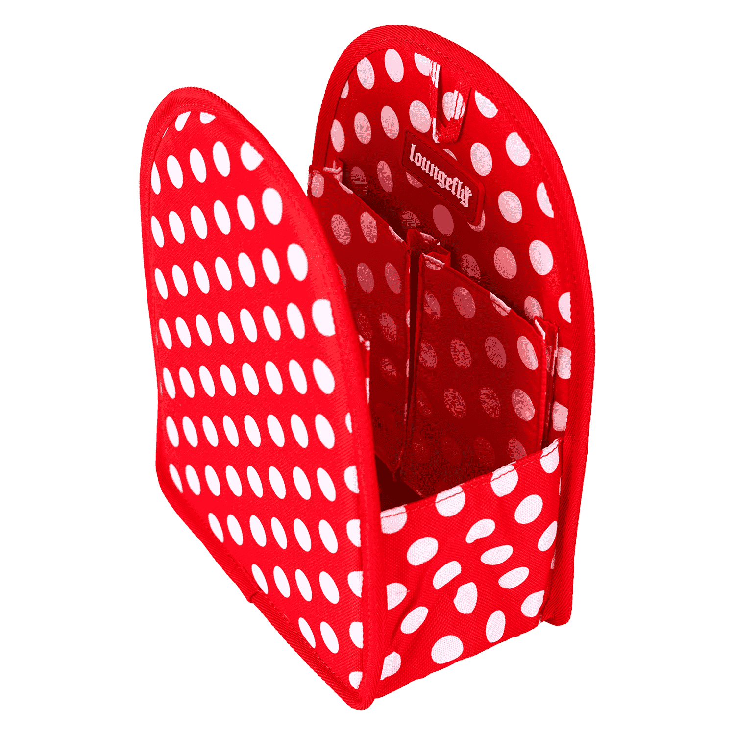 Arrive on the dot in style with this polka-dot mini backpack insert organizer. A red background makes the white polka-dotted pattern pop. This accessory is a fashionable and convenient way to travel. It comes with utility loops, making it easy to drop the organizer inside a standard-sized Loungefly mini backpack—and take it out again. Compartments, pockets, zippers, and nylon straps with lobster clips and D-rings will help you keep your items secure and within reach on daily outings. Show off your fandom while this heavy-duty and durable organizer does the heavy lifting to keep everything in place.rn rnFeatures:rnrnNylonrnCollapsible patch pockets, drop pockets, utility loops, lobster clips, D-rings, and printed detailsrnSturdy metal hardwarern rnDimensions:rnrn7.5”W x 9.5”H x 4”Drn19.1 cm W x 24.1 cm H x 10.2 cm DrnrnThis insert is an officially licensed Loungefly product. | Loungefly Polka Dot Mini Backpack Bag Organizer Insert | Officially Licensed | Nylon