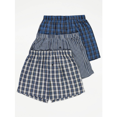 George Blue Checked Woven Boxers 3 Pack - Navy