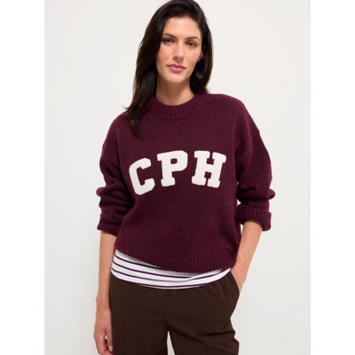 • High neck • Dropped shoulders • Long cuffed sleeve • Boucle 'CPH' slogan • Soft knitted fabric • Curved ribbed hem