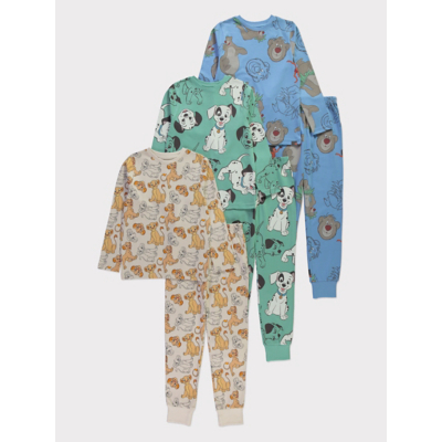 Get ready for bedtime fun with the George Disney Classics Long Sleeve Pyjamas 3 Pack. This delightful set brings your favourite Disney characters to life with vibrant graphics from The Jungle Book, 101 Dalmatians, and The Lion King. Each pair features a comfortable crew neck and long cuffed sleeves for a cosy fit that keeps little ones warm all night long.
