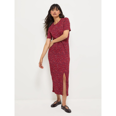 George Red Floral Short Sleeve Twist Front Midi Dr...