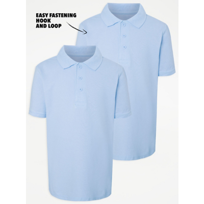 •Easy on easy wear • Sensory kind • Mock buttons • Hook and loop tape quarter fastening • 2 pack • Short sleeve • 100% cotton • Stain release • Lasting colour* • Stay white** *excluding white colourway ** white colourway only Easy On Easy Wear. School Uniform that helps with independent dressing and is sensory kind for extra comfort. Our range features: easy fastenings, pull-on styles where possible, printed care instructions (all labels removed), soft threads and non-bulky seams. Look out for the logo.