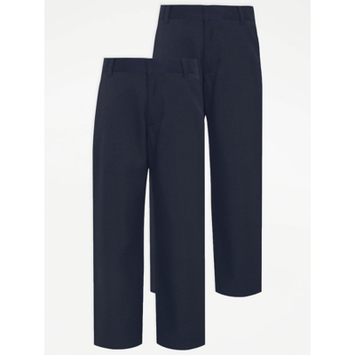 George Navy Regular Leg Boys School Trousers 2 Pac...