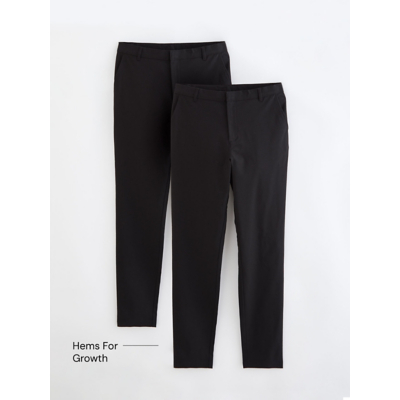 • 2 pack • Skinny leg • Senior • Adjustable waistband • 2 front pockets • 1 back pocket • Hook-and-eye and zip fly fastening • Stretch fabric • Reinforced knees • Hems for Growth