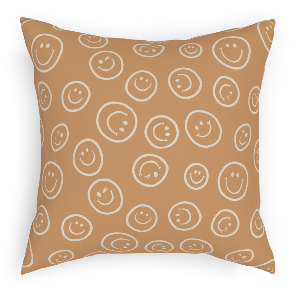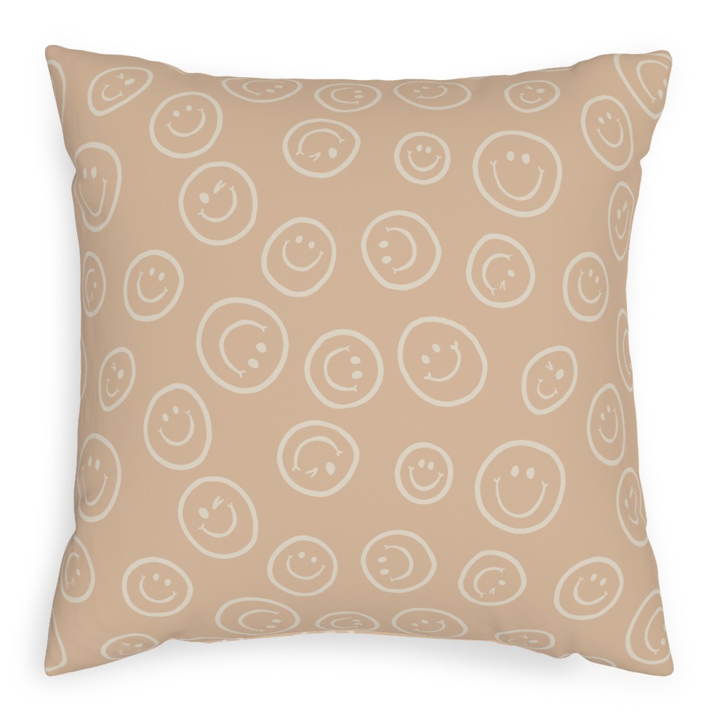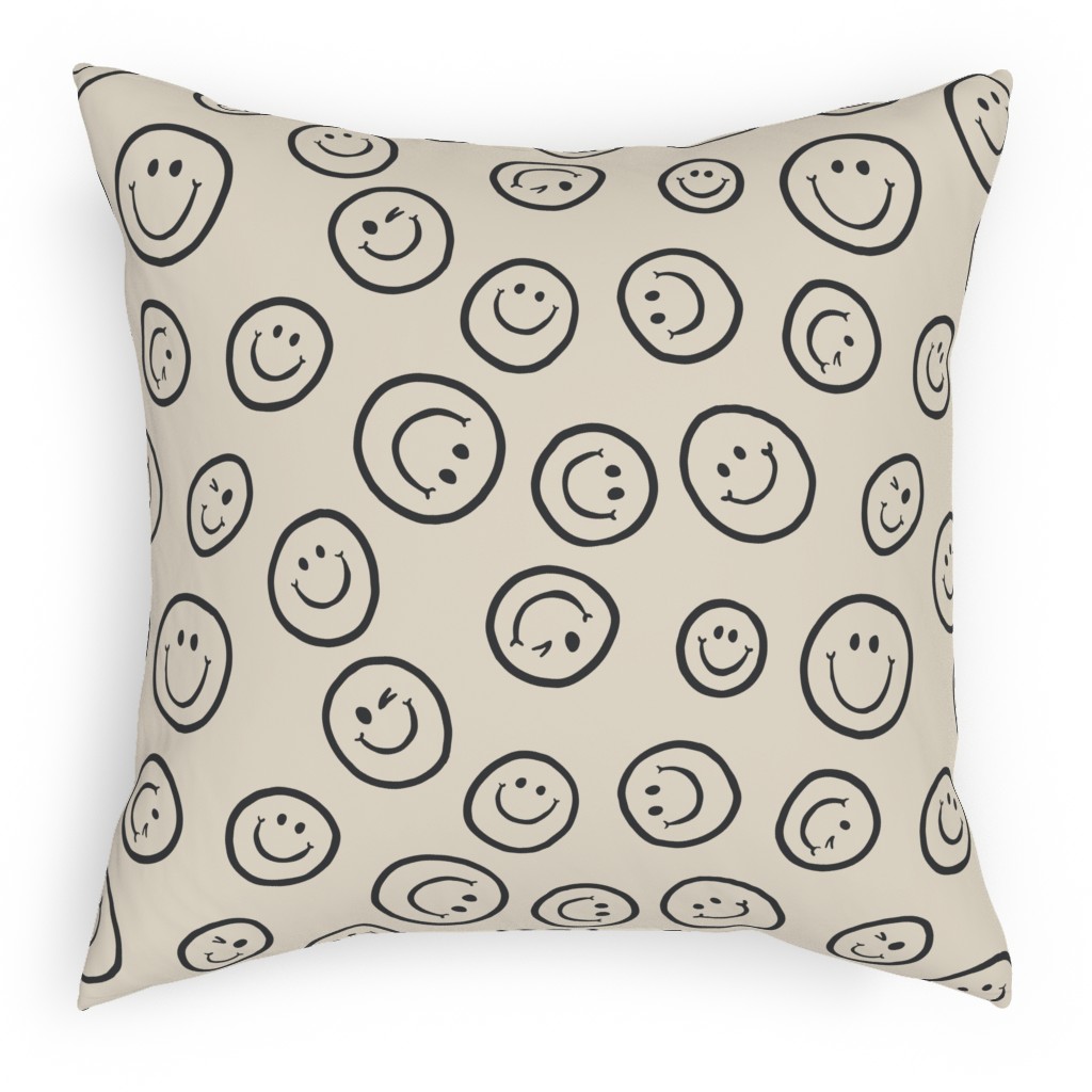Woven Pillows: Smiley Winking Faces, Beige, 18x18,...