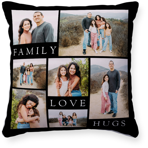 4 available sizes: 12x16, 16x16, 18x18, 20x20. Poly weave cover features ivory or black backing, or upgrade to printed front and back. Features hidden zipper enclosure with 100% polyester-filled insert. All cover options are machine washable. Imported. Personalized in the USA