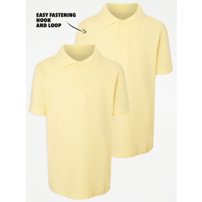 •Easy on easy wear • Sensory kind • Mock buttons • Hook and loop tape quarter fastening • 2 pack • Short sleeve • 100% cotton • Stain release • Lasting colour* • Stay white** *excluding white colourway ** white colourway only Easy On Easy Wear. School Uniform that helps with independent dressing and is sensory kind for extra comfort. Our range features: easy fastenings, pull-on styles where possible, printed care instructions (all labels removed), soft threads and non-bulky seams. Look out for the logo.