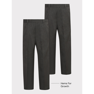 •2 pack • Regular leg • Easy on Easy Wear • Sensory kind - soft threads at seams for extra comfort • Printed care instructions • Elasticated waistband • Mock fly on all sizes • Pull on • Reinforced knees • Hems for Growth • 2 side pockets • Permanent front crease Easy On Easy Wear. School Uniform that helps with independent dressing and is sensory kind for extra comfort. Our range features: easy fastenings, pull-on styles where possible, printed care instructions (all labels removed), soft threads and non-bulky seams. Look out for the logo.