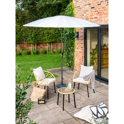 Relax on balmy summer afternoons and stay protected from the sun with this stylish oriental inspired parasol from George Home. Designed with an easy to operate crank handle to open it, and a canopy tilt which shifts from left to right, it's the perfect shade solution for garden and patio spaces. • Canopy 270cm • Crank handle operating mechanism • Canopy tilt • Easy assembly • 3.8cm aluminum parasol pole We recommend the use of a suitable parasol base weight to ensure stability.