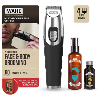 The Wahl Multigroomer 8 in 1 Gift Set is a complete grooming kit for face and body grooming. With 3 interchangeable heads for trimming, shaving and detailing. The Wahl 8 in 1 Multigroomer Gift Set, the perfect present for any occasion. The rechargeable trimmer features professional performance blades that effortlessly cut through facial hair, 60 minutes cordless run time for total freedom of movement and a soft touch finish for complete comfort. This versatile multigroomer has three cutting heads to cover all your grooming needs. Use the standard trimmer head to create designer stubble, maintain longer stubble, trim your beard and groom your body. The detail trimmer head takes care of ear and nose hair as well as finer detail trimming on eyebrows and facial hair. Use the shaver head for an ultra-close, smooth shave. Nurture your beard with the Wahl Beard Shampoo and Wahl Revive Beard Oil for gentle conditioning, leaving your beard soft and hydrated. Wahl Beard Wash is developed for people who care about their well-groomed facial hair whatever the length; you can now deep cleanse your beard, naturally, without stripping it of its all-natural oils. We have formulated this to delicately cleanse facial hair and the vulnerable skin underneath, leaving both beard and face clean, soft, manageable and smelling amazing. When you are shaping and grooming your beard at home, Wahl Beard Oil is the one fundamental product you are missing to complete your dapper routine. Beard hair can become frizzy and stick out awkwardly when it dries after cleaning. Our beard moisturising oil will nourish your skin and repair any damage to the skin. It aids in keeping your beard and the skin beneath it soft and smooth. No more flakey skin! Wahl Beard Oil will condition and nurture your beard which helps promote smooth and soft facial hair. The ultimate gift for any beardsman.
