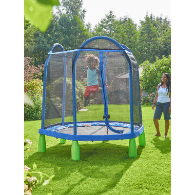 A Galvanised Premium Steel Frame offers Rust Free Protection, increased Strength and Maximum Durability. Internal Enclosure Net design protects and prevents user access to the frame and springs. Padding on frame and Enclosure poles for added protection. Zinc coated, Strength Tested Springs with a Durable Jump. Mat provides a smooth and consistent bounce experience. •Assembly size: Dia.213 x 219cm • Min. user age: 3-6 years; Max user weight: 45KG • Adult assembly required. • Easy assembly. • Domestic use only. • One user at a time. • Follow user and maintenance instructions. :: Customer Review = 4.2