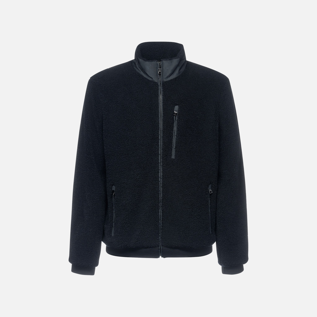 Soft sweatshirt for men with a laid-back aesthetic that makes it an ideal match to sporty outfits. Soft sweatshirt for men with a laid-back aesthetic that makes it an ideal match to sporty outfits. This attractive version has been cast in a midnight-blue palette and includes a zip closure as well as three practical zipped pockets at the front. Crafted from a teddy-fleece-effect recycled material, it ensures warmth and the utmost comfort throughout the day.