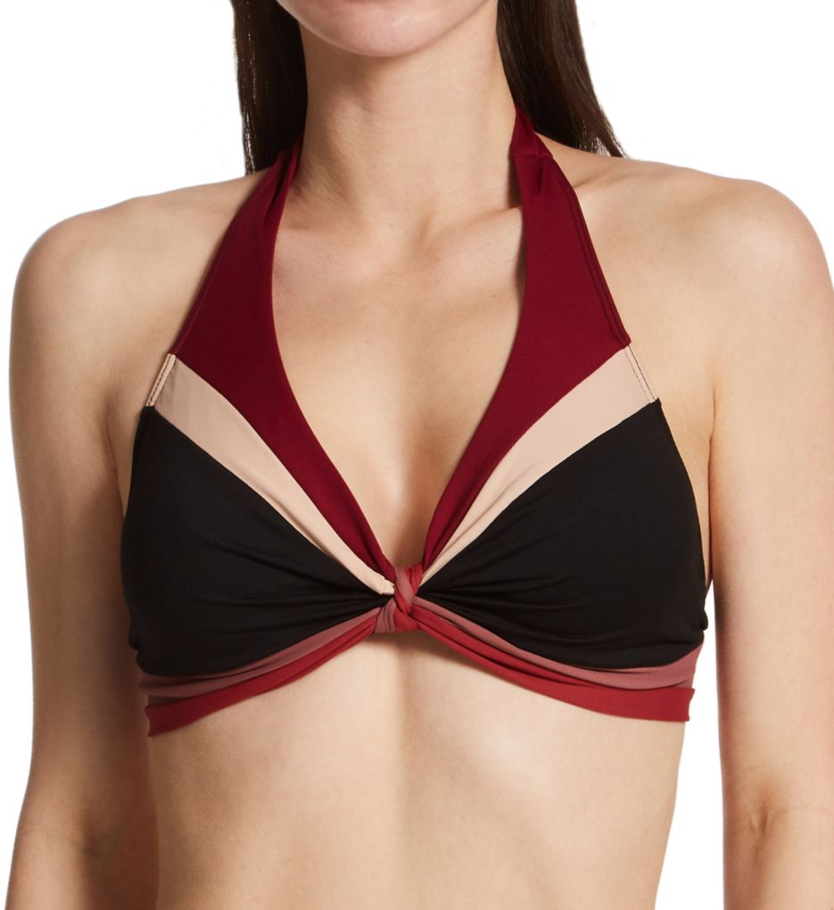 Step into retro glamour with the Robin Piccone Billie halter swim top featuring striking black and rose colorblock design. This fashion-forward XS swim top combines bold geometric patterns with exceptional support for a flattering silhouette. The adjustable halter neckline lets you customize your fit while allowing for even tanning across your back and shoulders. Crafted from premium materials that withstand sun, saltwater, and chlorine exposure, this swim top maintains its vibrant colors and shape season after season. The contemporary color blocking creates visual interest that pairs beautifully with solid bottoms or matching high-waisted styles. Versatile enough to transition from swimming to fashion wear when paired with shorts or skirts, this top offers moderate coverage with sophisticated style. HerRoom brings you this statement-making swim option for women who want to stand out at the beach or pool with confidence and timeless elegance.