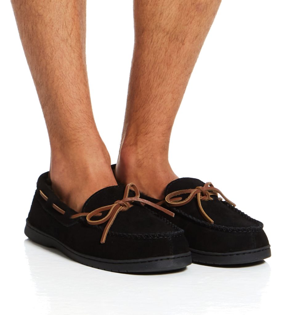 Dearfoams Men's Suede Moccasin Slippers - Black Si...