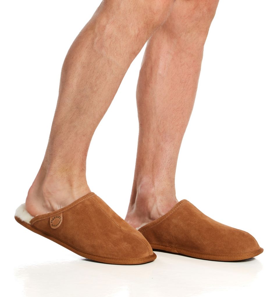 Stay cozy in these Dearfoams suede scuff slippers. The genuine suede exterior and plush faux shearling lining keep your feet warm, while the memory foam insole molds to your feet for personalized comfort. The durable TPR outsole features a textured tread for slip resistance, making them suitable for indoor and outdoor wear. A timeless design that adds sophistication to your relaxation routine. Perfect for year-round comfort.