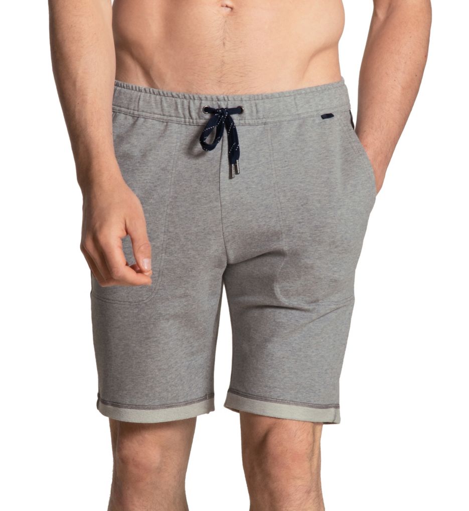 Comfy lounge shorts are styled with soft stretch knit French terry interior and turn-up at leg hems. Keep your phone and other items by your side with side slash pockets. Made of mercerized cotton and elastane. Covered elastic waistband stays securely in place. Woven drawstring runs through silvertone metal grommets at center waist. Slash pockets are deep enough to hold your phone and other small items. Striped band is sewn down at top sides. Logo tag is sewn at bottom front of waist. French terry interior adds a touch of comfort. Back of right leg has a functional patch pocket. Cotton knit is soft and allows the shorts to breathe. Multi-directional stretch provides a flexible fit. Two-ply, turned up cuffs have French terry surface. Back of inner waist has interior fabric/care info tag. Lightweight knit is great to wear in warmer temperatures. Perfect for sleep and lounge. Relaxed fit. Flyless. Calida Men's Remix Basic Cotton Stretch Lounge Short in Gray (27181) | Size XL | HisRoom.com