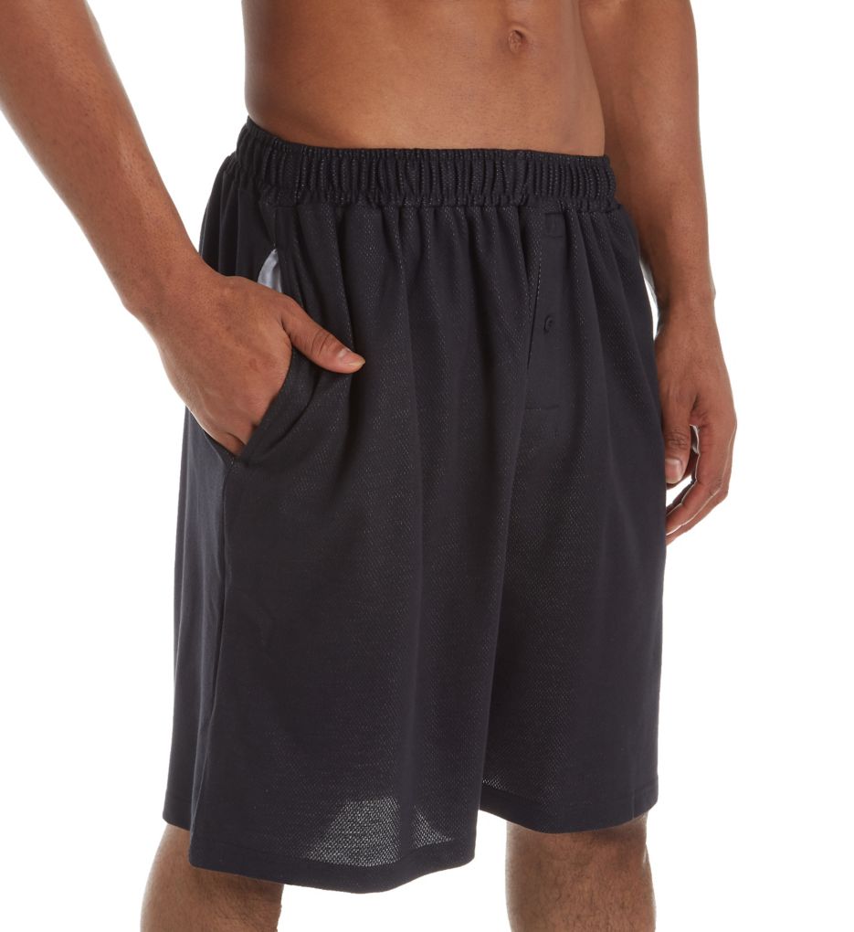 This lightweight, extended size lounge short features on-seam side pockets. Made of cotton/polyester. Covered elastic waistband has interior drawstring ties at front to adjust fit. Button fly-front with placket cover, with one functional button. On-seam pockets. Tagless Relaxed fit. Open fly. Lightweight, semi-sheer woven is great for warm weather lounging and sleeping. Hanes Men's Big & Tall Lounge Short in Black (4253) | Size 9XL | HisRoom.com