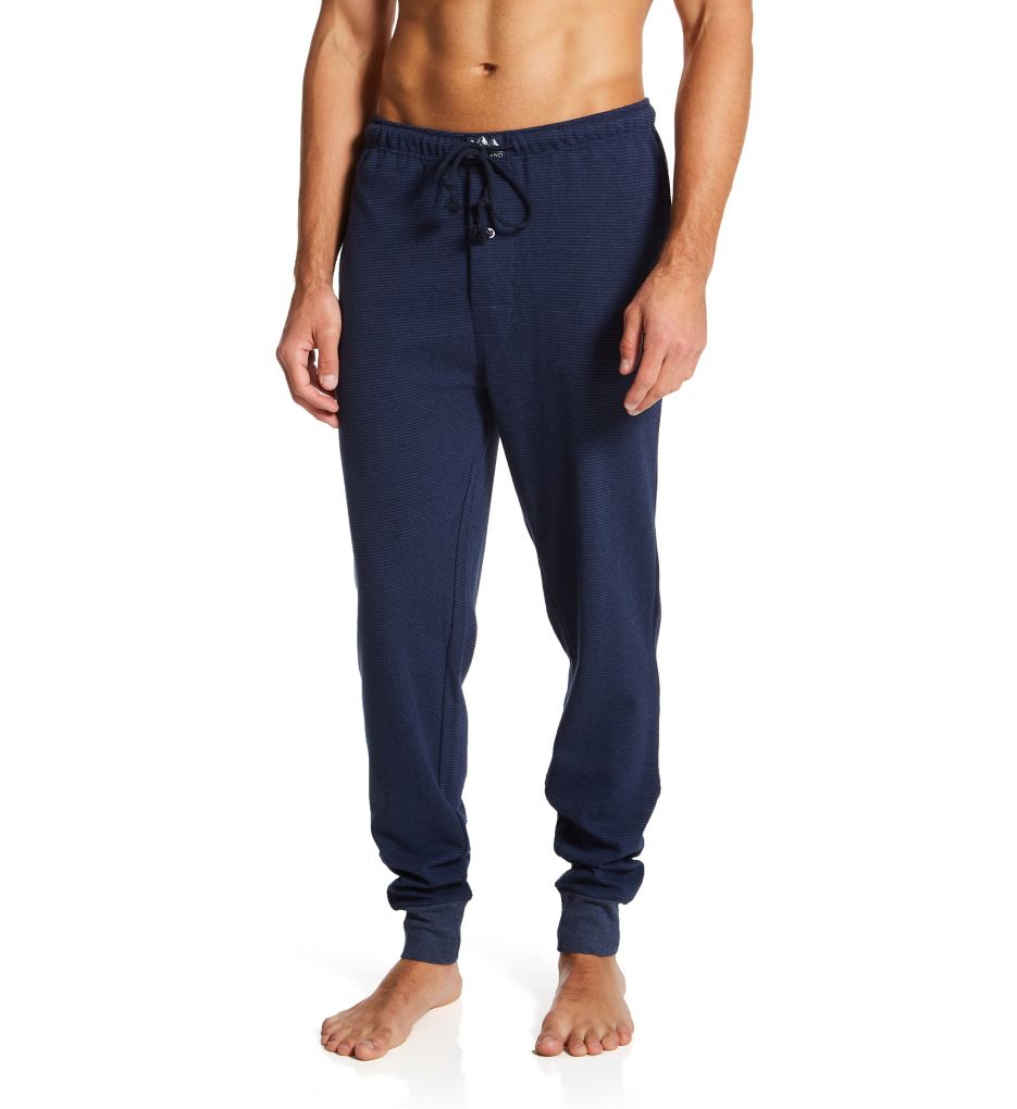 Unique knit has a striped pattern with a sporty jogger design. Made of a knit, eco-friendly recycled cotton with recycled polyester. Textured striped knit on outside has a smooth feel on the inside. Waistband is two-ply knit with elasticized stitching for a close, flexing fit. Encased outer drawcord has long ends for easy adjustment. Button fly-front for convenience. On-seam pockets have striped, textured interior. Fine-ribbed cuffs on legs. Woven label sewn onto front of waist features Lucky logo design. Fabric info tag is tucked into underside of waist inside back. Open fly. Mid-weight knit is comfortable whether it's warm or cool. Lucky Men's Cotton Blend Jogger Lounge Pant (213LP04) | Size Medium | HisRoom.com