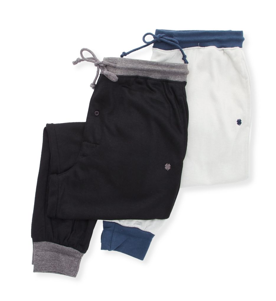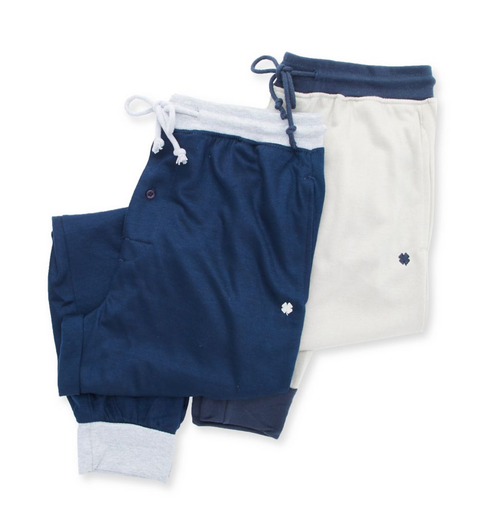 Button fly joggers stay in place with adjustable drawcord at center waist and contrast leg cuffs. Pockets at sides keep your phone and other small items secure. Polyester and viscose blend to make super soft knit for superior sleep and lounge. Pack comes with two different jogger pants. Contrast, covered elastic waistband has woven drawcord that ties at center front. Button fly secures with one logo button. Lucky clover is embroidered with contrast threads next to left pocket. On-seam pockets are deep enough to hold a phone. Contrast, two-ply cuff keeps pant leg in place. Terry interior provides extra comfort and warmth. Soft, midweight knit is great to wear when the weather gets chilly. Perfect for casual outings or sleep/lounge. Inner tag gives fabric/care instructions. Slim fit. Lucky Men's Slim Fit Super Soft Terry Joggers - 2 Pack (213LS15) | Size XL | HisRoom.com