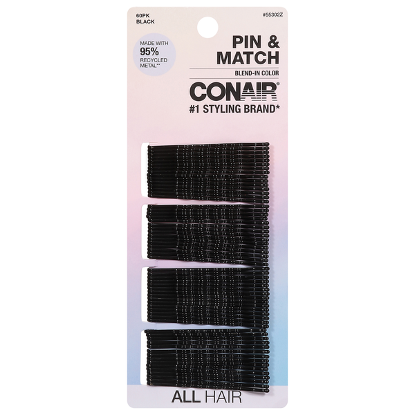 Conair Hair Pin, Pin & Match, Black - 60 ct