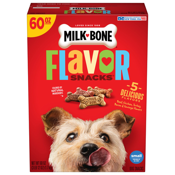 Contains one (1) 60 ounce box of small dog biscuits in 5 tasty flavors: beef, turkey, chicken, bacon and sausage (packaging may vary), Wholesome and tasty dog treats prepared with care and colored by natural ingredients, Crunchy texture helps freshen breath and reduce tartar build-up, perfect for sloppy doggie kisses, Vitamins and minerals (twelve to be exact), Bone-shaped deliciousness that makes dog life more fun