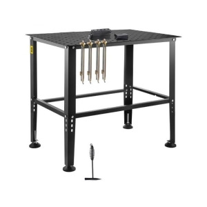 Featuring multiple 0.63-inch fixture holes spaced 2 inches apart, this welding workbench lets you easily clamp your fixtures, keeping tools within reach and your workspace organized. Say goodbye to clutter and enjoy a more efficient work environment. Stability is key to welding quality. Our welding work bench features 4 adjustable anti-slip foot pads, designed to adapt to uneven floors. Combined with sturdy beams for added support, giving you a reliable foundation for your welding tasks. Whether you're a metal hobbyist or a seasoned professional, the welding table offers a wide range of applications. Boasting a spacious desktop area measuring 36 x 24-inch, it provides ample room, allowing you to weld with ease, flexibility, and precision. Assembling the welding table is a breeze, and you can easily follow the instructions to complete the installation. Perfect for repair shops and workshops, this welding workbench provides both convenience and efficiency for your welding tasks. FeaturesWelding Table 36"x24" 800LBS Welding Workbench Table with Multiple Fixture HolesPremium MaterialLarge SpaceReinforced StructureAdjustable FeetPractical DesignsWide ApplicationSpecificationsTabletop Size: 36 x 24 in. / 914.4 x 609.4mmMax Loading Capacity: 800 lbsTool Hole Diameter: 0.63 in. / 16 mmMain Material: Carbon Steel & GalvanizedDimensions: 36.0 x 24.0 x 30.9 in. / 914.4 x 609.4 x 784.8mmCountry of Origin: USAWeight: 58.0 lbs