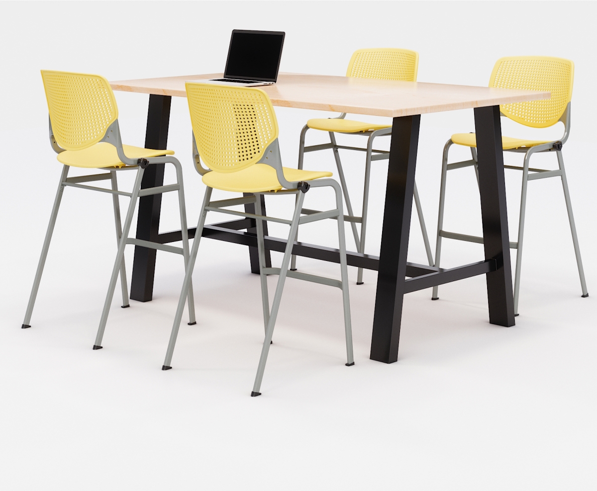 SpecificationsIndustrial meets contemporary - Table and 4 stool set. Get the industrial vintage look with these classic tables. Ideal for meetings, collaborative areas, cafeterias or any touchdown area. The frame has 4" x 2" thick steel legs with cross-beams for a distinct look and unmatched durability. leveling glides for uneven floors. The top is made of 1.25" Thick High Pressure Laminate with a matching 3mm PVC edge. It's resistant to stains & spills and is easy to maintain and clean. The stools have an "easy to clean" polypropylene seat and back. The ergonomic perforated back allows for enhanced circulation, while the radius conforms to your back for maximum comfort. The stool offers a contoured extra wide seat pan and a 400 lb. weight capacity to provide comfort and accommodate all sizes. The oval frame is made of 15 gauge steel with silver powder-coat. The 2300 is one of most complete stack stools on the market. It's just plain KOOL. CAL 117 certified, 12 Year Limited Warranty.
